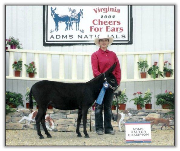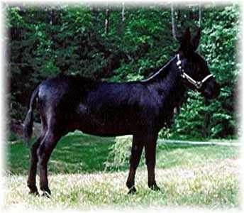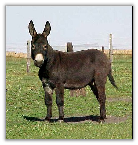 She's finally here! Dirty is one of National Champion Circle C Motown's Secret's last foals. She's a beauty and has that same winning expression that says she wants to be a show donkey just like her dad! She has an intermediate white muzzle..the only white on her except for a little white fuzz in her ears and under her front and rear legs...her belly is dark and she has no eye rings.