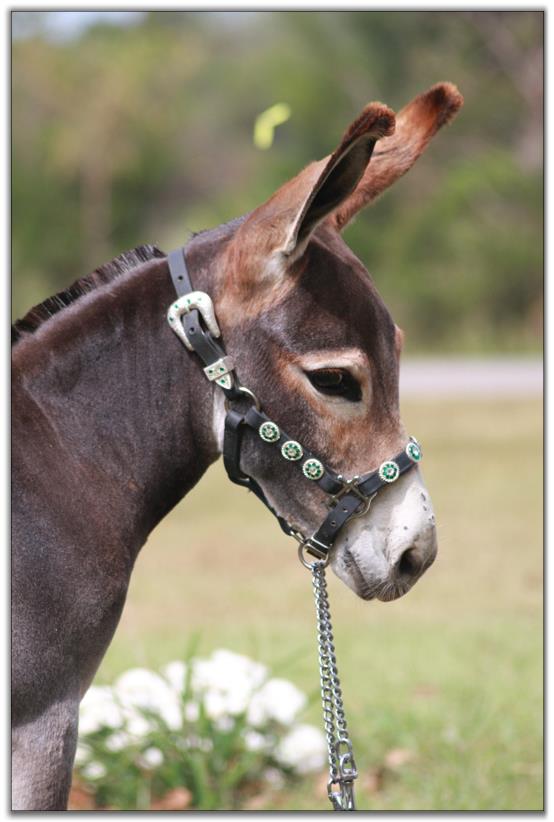 News Flash!!! Le Roux's full sister, HHAA Apple of My Eye aka "Eve" won NMDA Junior Champion at The Oregon Mule & Donkey Show on August 7th, 2010, for her new owner, Julie Jones, at JF Ranch in Washington. Photo coming soon! Another News Flash! Eve just wonYearling Jennets at the 2010 NMDA Nationals in Red Bluff, California!!!