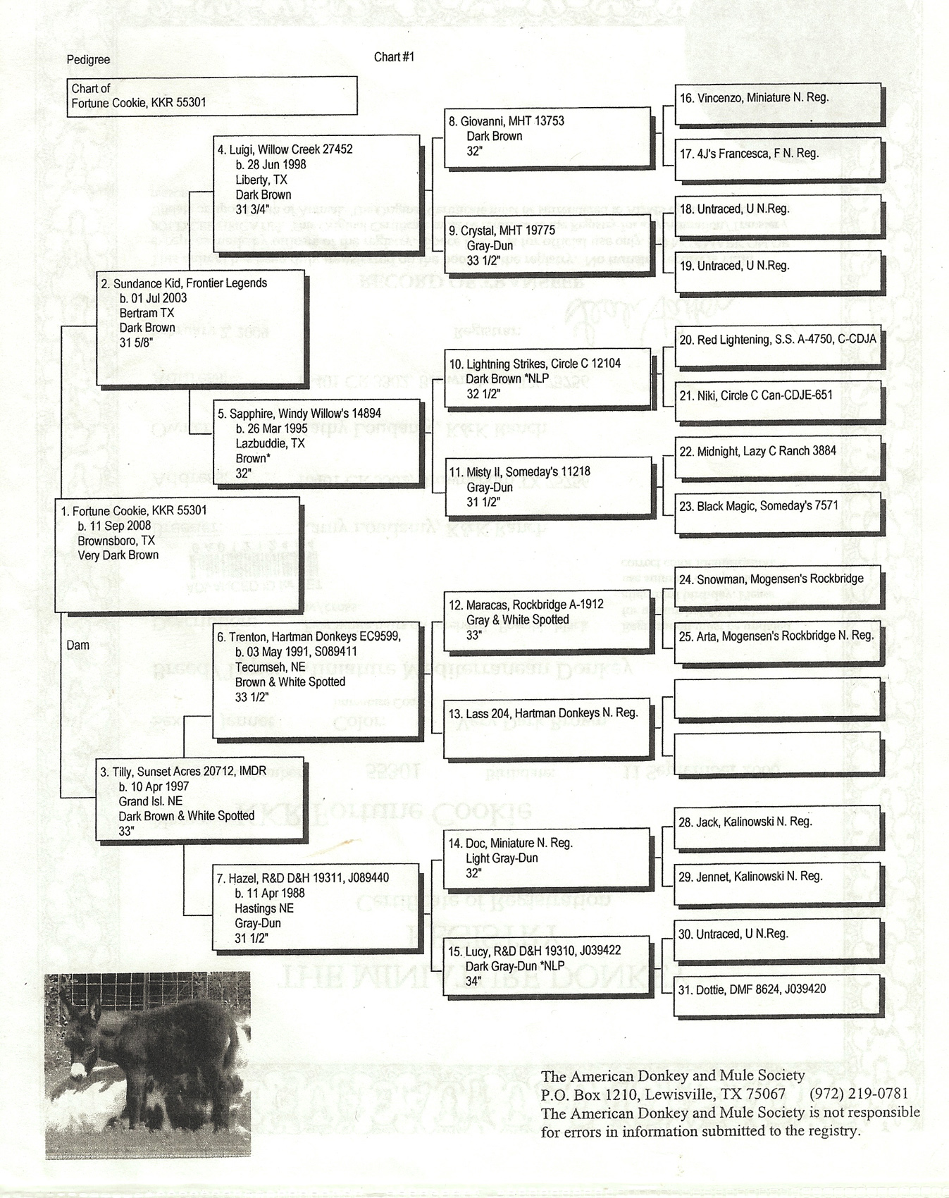 Click MDR sign for Miniature Donkey Registry Pedigree Cookie's pedigree!
