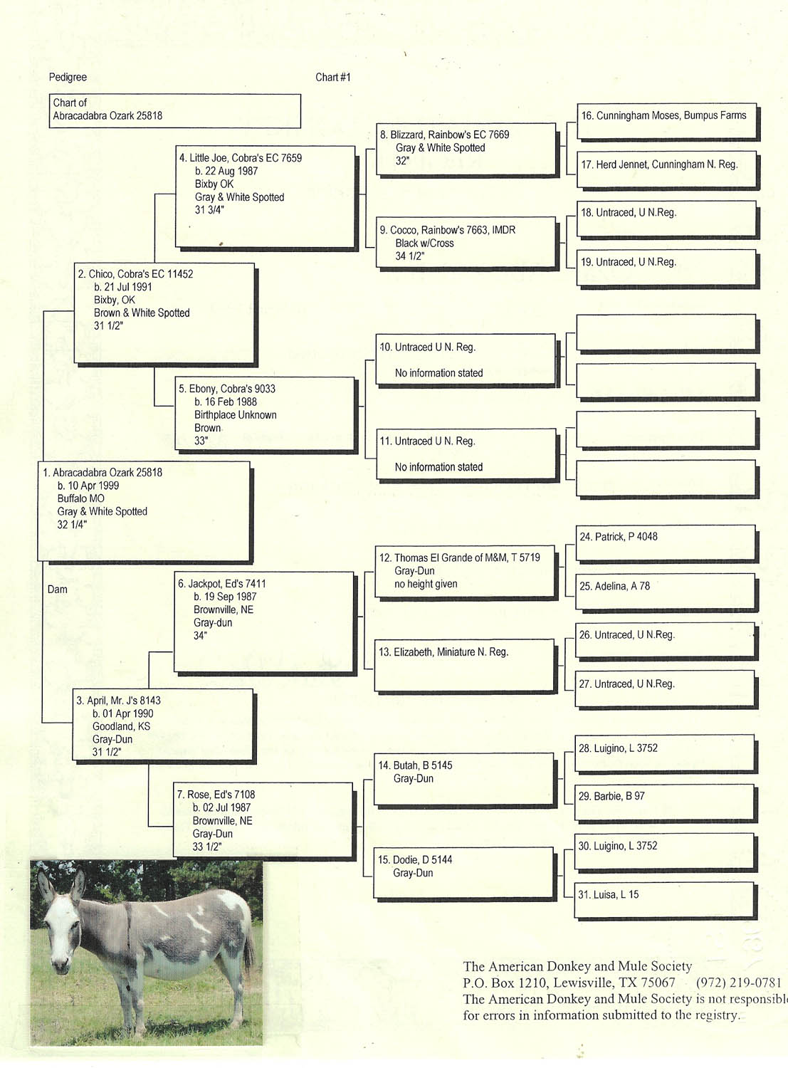 Click MDR sign for Miniature Donkey Registry Pedigree Abby's pedigree!